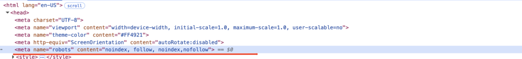Then, search for the following meta tag in the HTML. If it is present, it means the page is explicitly marked to be excluded from indexing.